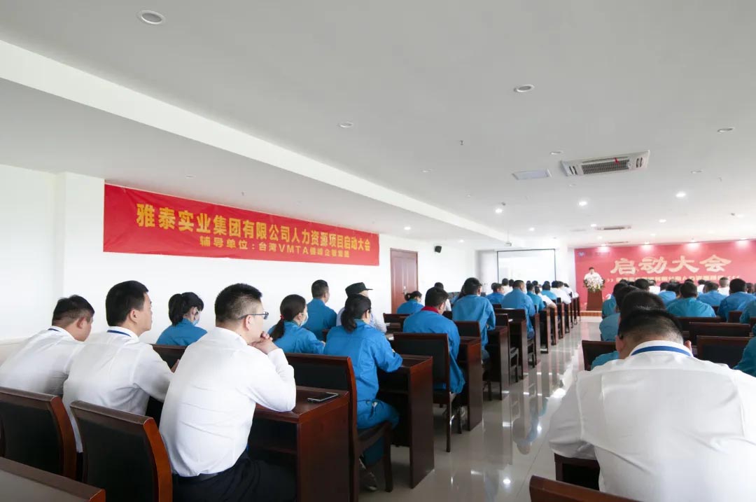 為提升企業(yè)整體管理水平,創(chuàng)造更為優(yōu)質的人才環(huán)境,5月21日上午,集團特邀臺灣VMTA健峰企管集團導入人力資源輔導項目,在江蘇雅泰召開雅泰實業(yè)集團人力資源輔導項目啟動大會。