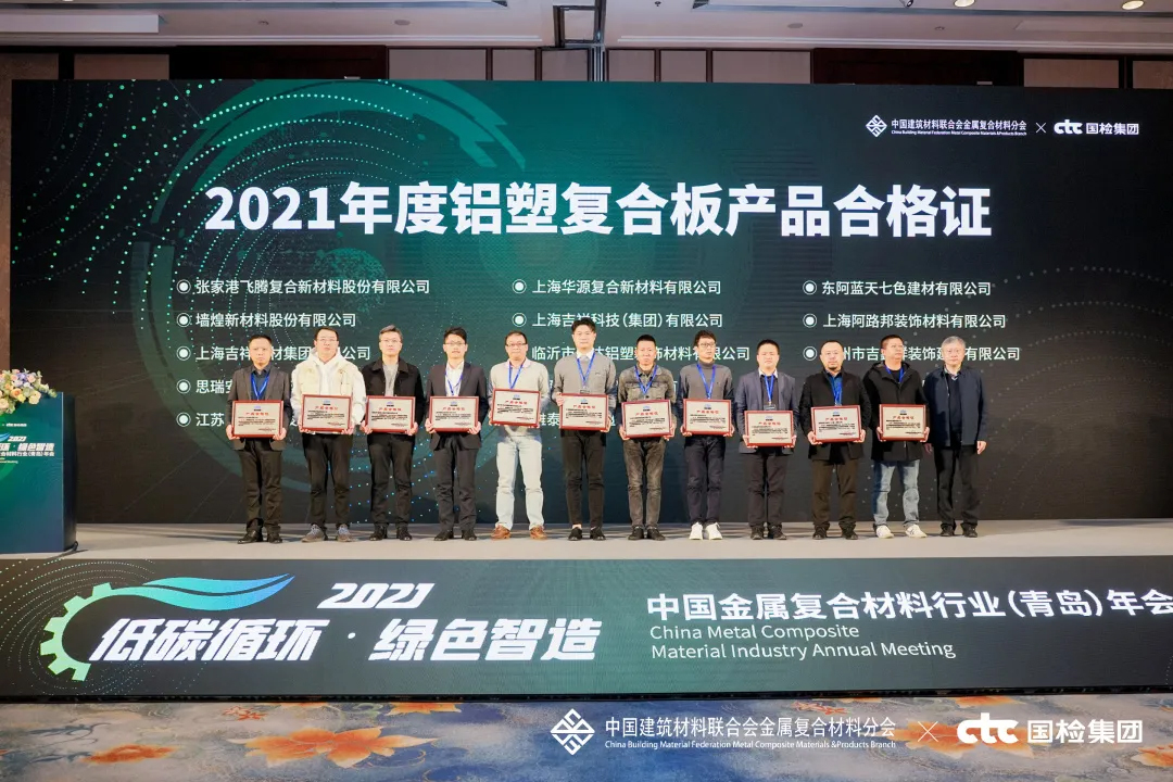 會(huì)上,對(duì)2021年度行業(yè)優(yōu)秀的產(chǎn)品與企業(yè)進(jìn)行了表彰頒獎(jiǎng)——雅泰 YARET 牌鋁塑復(fù)合板,于2018年至2021年期間經(jīng)中國建材檢驗(yàn)認(rèn)證集團(tuán)股份有限公司抽樣全項(xiàng)檢測,產(chǎn)品質(zhì)量符合中華人民共和國國家標(biāo)準(zhǔn)(GB/T 17748-2016),榮獲2021年度CTC認(rèn)證產(chǎn)品合格證。