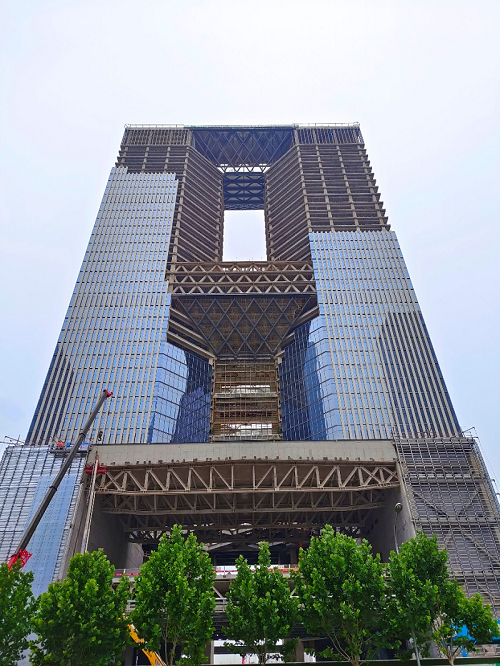 該斜面幕墻區(qū)域,全手工焊接,為了保證建筑外立面的平整度,要求產(chǎn)品在工廠內(nèi)加工精度誤差不能超過(guò)2mm,經(jīng)過(guò)全員共同努力,緊跟大廈主體結(jié)構(gòu)同步施工,已經(jīng)順利配合外墻裝飾材料的供貨20000余平方。
