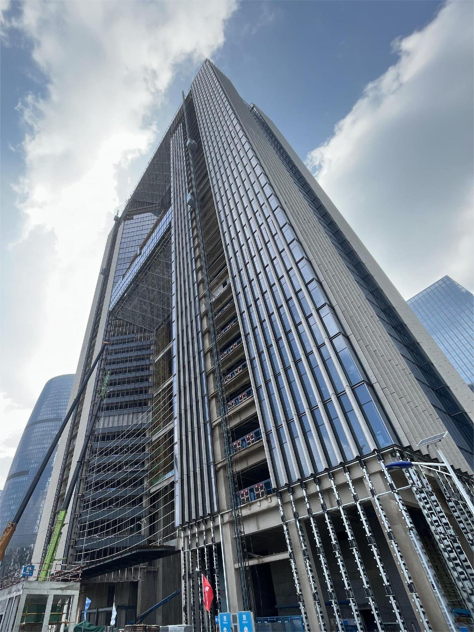 該工程由中國(guó)建筑第八工程局有限公司承建,雅泰實(shí)業(yè)集團(tuán)承接外墻裝飾部分材料供材約40000平方米。項(xiàng)目體量大、工期短,目前工程全面進(jìn)入外墻裝飾階段,集團(tuán)全力保障該項(xiàng)目的供材,預(yù)計(jì)10月完成外幕墻全部封閉。封閉后可以完整地看到大廈上部呈現(xiàn)為一個(gè)雄偉的大門,彰顯國(guó)家對(duì)信息建設(shè)的信心和決心,“信息之門”由此而來(lái)。