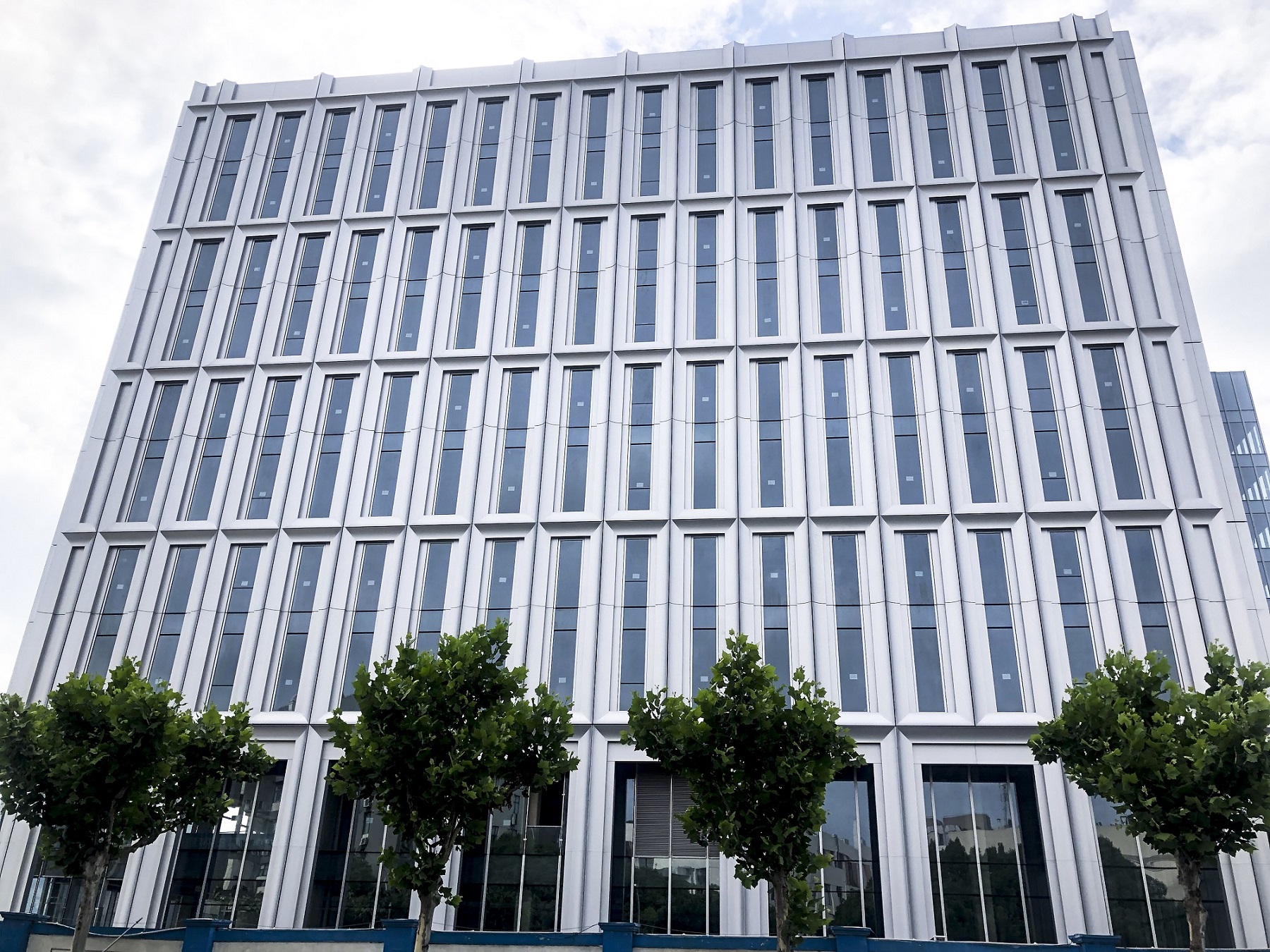 該項目是單元體幕墻結(jié)構(gòu),現(xiàn)場骨架與鋁板融為一體,鋁板組裝嚴絲合縫,單個單元體使用連接片160余個,其中60個需要機加工,以滿足三邊連接型材,個體螺絲使用量約1200顆。整體組裝后尺寸達到3000*5100mm。