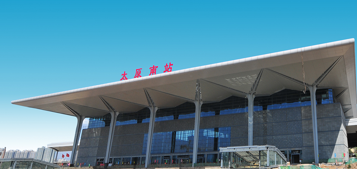 太原南站位于太原市小店區(qū)北營(yíng),東臨東山過境高速公路,西接太原武宿國(guó)際機(jī)場(chǎng),南依南環(huán)高速公路,北靠長(zhǎng)風(fēng)大街,地處國(guó)家級(jí)太原高新技術(shù)開發(fā)區(qū)、太原經(jīng)濟(jì)技術(shù)開發(fā)區(qū)及武宿物流區(qū)等三大園區(qū)交叉輻射的核心地段。占地面積45公頃,站房主體結(jié)構(gòu)為地上兩層地下一層,建筑面積約20.06萬(wàn)平方米,其中客運(yùn)站房建筑面積5.5萬(wàn)平方米以上,車場(chǎng)規(guī)模為10臺(tái)22線,設(shè)計(jì)年發(fā)送旅客量可達(dá)4000萬(wàn)人次以上。工程投資估算總額約30億元以上,由鐵道部和山西省共同出資建設(shè),是山西省內(nèi)第一座高標(biāo)準(zhǔn)現(xiàn)代化的大型鐵路客運(yùn)站,為太原市標(biāo)志性建筑之一。